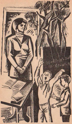 © Журавлева Зоя 1966 ![]() ГЛАВА ПЕРВАЯ 1 В школьном буфете волнующе пахнет бульоном, кипяченым молоком, соевыми батончиками. Одуванчики, ярые в своей желтизне, пьют из литровой банки воду с сахаром — чтобы дольше стоять. В окна лезет май. С белой стены подмигивает рыжее бритое солнце, с ухмылкой пятиклашки, в облаке набекрень — вместо берета. Солнце, похоже, прогуляло все пять уроков в березовом раю, в том самом, что на другой стене, прямо за спиной тети Шуры — буфетчицы. — Разрисовали, что тебе цирк, застрелись... — несердито ворчит тетя Шура. Она от полноты жизни ворчит. Когда в весенние каникулы смывали зимний рисунок и наводили свежий, тетя Шура банным листом ходила за девятым «б», художниками. Просила за солнце: «Рожу-то ему повеселей начертите, ребята. Чтобы смеялось, застрелись оно совсем!» Тетя Шура жизнь прожила под багетом с «Мишками» и никак не давала их выносить, когда по-новому оформляли. Грозилась: «В другую школу уйду!» Потом вошла во вкус. Говорили, будто даже свою собственную комнату перекрасила в четыре цвета. — Темная была, как бутылка, — наговаривает на себя тетя Шура. У окна за столом ложками рвут сардельки словесник Елена Федоровна, полная, в глухом костюме, и Зинаида Петровна, математик. Зинаида Петровна вся состоит из прямых тонких линий, пересеченных под острым углом. Она считает, что ее можно выразить алгебраической формулой. Только Зинаиде Петровне некогда этим заняться. Вот выйдет на пенсию и займется. Она уже года четыре выходит. Волосы Зинаида Петровна красит так удачно, что девочки из десятого «в» — кто-кто, а они в этом деле доки — подходили в неофициальной обстановке, спрашивали — красит или свои? Надо же, ну ни капельки не похоже! А чем? Надо же, большая химия! А губы — никогда? Ну а чуть-чуть? Надо же! Голос у Зинаиды Петровны широкий, густой, будто вся она в голос ушла. — Логический провал, — гудит Зинаида Петровна. — Уроки хороших манер ввели, а в буфете ни одной вилки. Не говоря о ножах... — Да не все уж сразу, Зинаида Петровна, — объясняет Елена Федоровна, запивая непринципиальные разногласия крутым чаем. У Елены Федоровны округлый, приятный разговор, с чуточной волжинкой. По утрам она просматривает газеты и мысленно подчеркивает слова, трудные старшеклассникам: ингредиент... дискредитировать... Джеты-Огуз — поселок, кажется... Как бы ни была интересна книга, стилистические ошибки так и лезут, выпукло, со страниц. Глаза у Елены Федоровны острые, с легким прищуром — от тетрадей. — Противоречие, — гудит Зинаида Петровна. — Это, знаете, я на выставке достижений прочитала, в отзывах: «Наши инженеры освоили выпуск сложных электронных машин, а обыкновенного фломастера в магазине не купить». — Неумно, — говорит Елена Федоровна, — и наверняка чужой фамилией подписался. Не в вилках счастье. — Не скажите, — гудит Зинаида Петровна, — как мы можем воспитывать у них хорошие манеры... — Манеры... — ворчит тетя Шура, — одна у них манера, застрелись, — руками хватать... — В конце концов, — говорит Елена Федоровна, — без той определенной суммы знаний, которую мы им даем, никакие манеры... — Святой Ильф! — с порога возмущается Ирина Витальевна. — И тут урок! Битых два часа просидела со своими, а Валеева все равно пишет: «пелка», «пегает». — Да уж с Валеевой — ясно, — говорит Елена Федоровна. — На второй год так или этак. — Сегодня мамонт